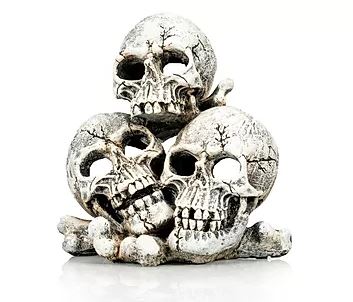 Resin Skull Ornament. Measurements are: 18 x 13 x 18cm. Great for adding personality to your terrarium or aquarium, can also be used as a hide for small animals.